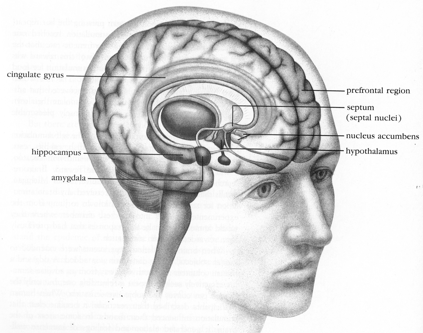 我們都有一種經驗,早上起床時,莫名其妙的心情不好,這主要是受到大腦中的「杏仁核」影響,杏仁核的功能為掌管焦慮、急躁、驚嚇及恐懼等負面情緒。這時,只要將內心中不安的因素拿掉,例如男生通常去打球,女生會去逛逛街,讓自己的注意力轉移,情緒就會好轉。目前治療憂鬱症就是用藥控制杏仁核,使當事人的情緒好起來,改變他對事情的看法,進而消除負面情緒。