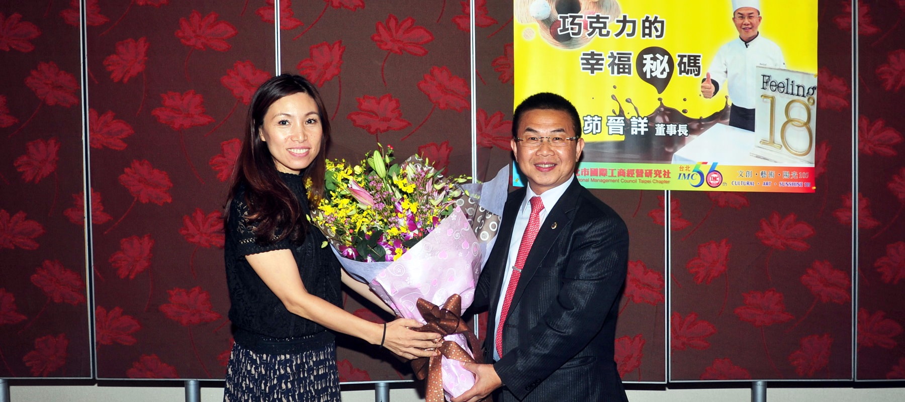去年我完成了我人生第一本書, 書名為巧克力的幸福秘碼。感謝主辦單位幫我做這一張海報,讓我感受很深,特地把秘字標示出來。幸福秘碼的”秘”我特別用這個”秘”字代表我心裡的秘境。我要讓大家知道一個從鄉下長大,因家境困難被迫國中畢業就要去職場工作的小男孩的心路歷程。我那時從埔里台中來到台北打拼,當時只有一個想法,我一定要學到一個非常好的甜點來回饋家鄉。其實當初只有這樣一個想法,另外就是趕快有個好的收入解決家裡的經濟困境。我認為這是我們現在年輕人,國中畢業後就必須要有的擔當,所以最近每個月我大概都有5-6場的大學高中學校的演講分享, 讓現在的年輕人了解,其實國中畢業就要決策你的未來,國中畢業應該就要懂事了。所以我的學歷並不是很高, 當我開始有好的穩定的收入, 我回到學校讀書,不斷進修。 所以現在還在暨南大學總裁EMBA班做一個很乖的一個學生,因為我會珍惜把握所爭取到的機會,並且很認真的去努力。