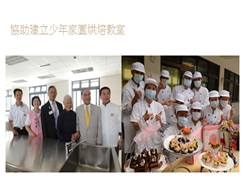 取之於社會用之於社會, 我們用巧克力分享幸福分享愛. 我在埔里總共協助了13個基金會, 我以前協助它們的方式都是用捐款的方式, 之後我發現我應該用這些錢教他們怎麼釣魚. 少年家園文教基金會收容關懷的大部分都是一些邊緣的青少年, 幫助他們繼續讀書. 因為青少年禮拜六禮拜天沒事情做, 我就教他們做甜點. 就這樣我又花了500萬成立了烘焙教室, 應該是台灣烘焙設備最好的一家。捐了這個設備以後我又不斷幫少年家園找很多經費, 我當獅子會會長的時候我就幫他們找資金. 一年至少給他們500萬. 最主要是培育這些孩子們。在他們很小的年齡就看到自己可以創造價值。 從裡面有三四個來到我公司工作, 現在他們工作都很好, 反應敏銳度品質都很好, 好好的關懷他, 他們就會做得很好.