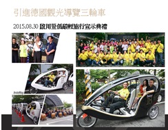 我去年到南非發表我愛閱讀計畫的分享, 有個黑人跟我說, 你來非洲我給你一塊地給你種可可. 這是連結幸福計畫, 我把不同的基金會串聯起來, 每個月有不同的基金會一起辦活動, 讓所有基金會在不同的客戶群中曝光, 互相辦活動, 讓更多人知道基金會到底是在做甚麼. 我去年從德國引進了四台觀光導覽三輪車. 送給埔里鎮的人, 志工是我們培養的, 坐車不花錢, 這是我們打造觀光的方式.