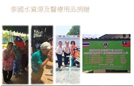 我在泰國有四間店, 公司投資運氣不錯, 所以兩年前股票上市上櫃. 我把賺到的錢全部拿回來做社會公益, 做醫療的捐贈跟水資援, 跟扶輪社一起為泰國偏遠地區人民找水資源. 大陸賺錢也沒有拿回來, 全部在做這些關懷的工作. 這是獅子會百年計畫的一系列活動, 平均每年捐一百萬給獅子會.