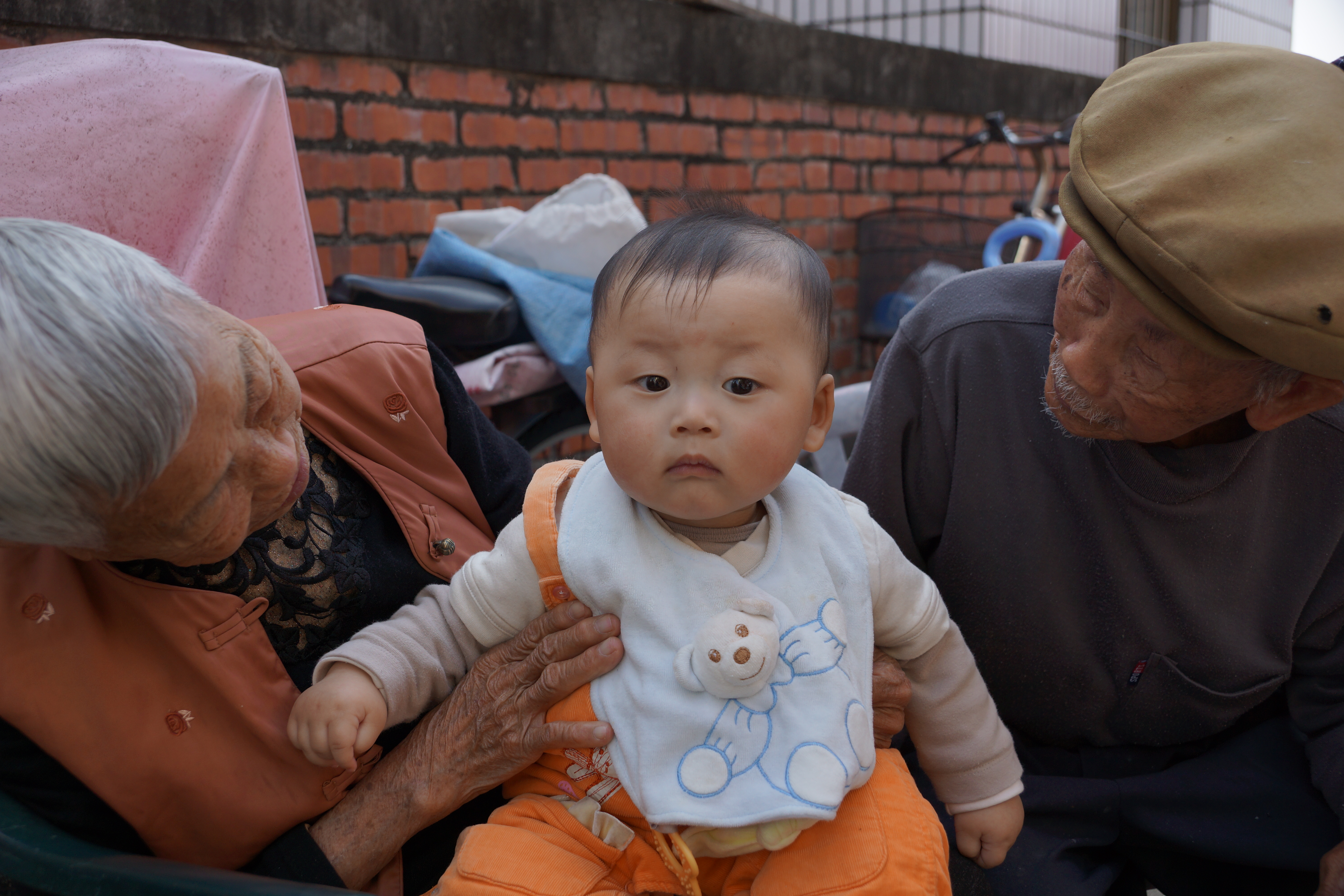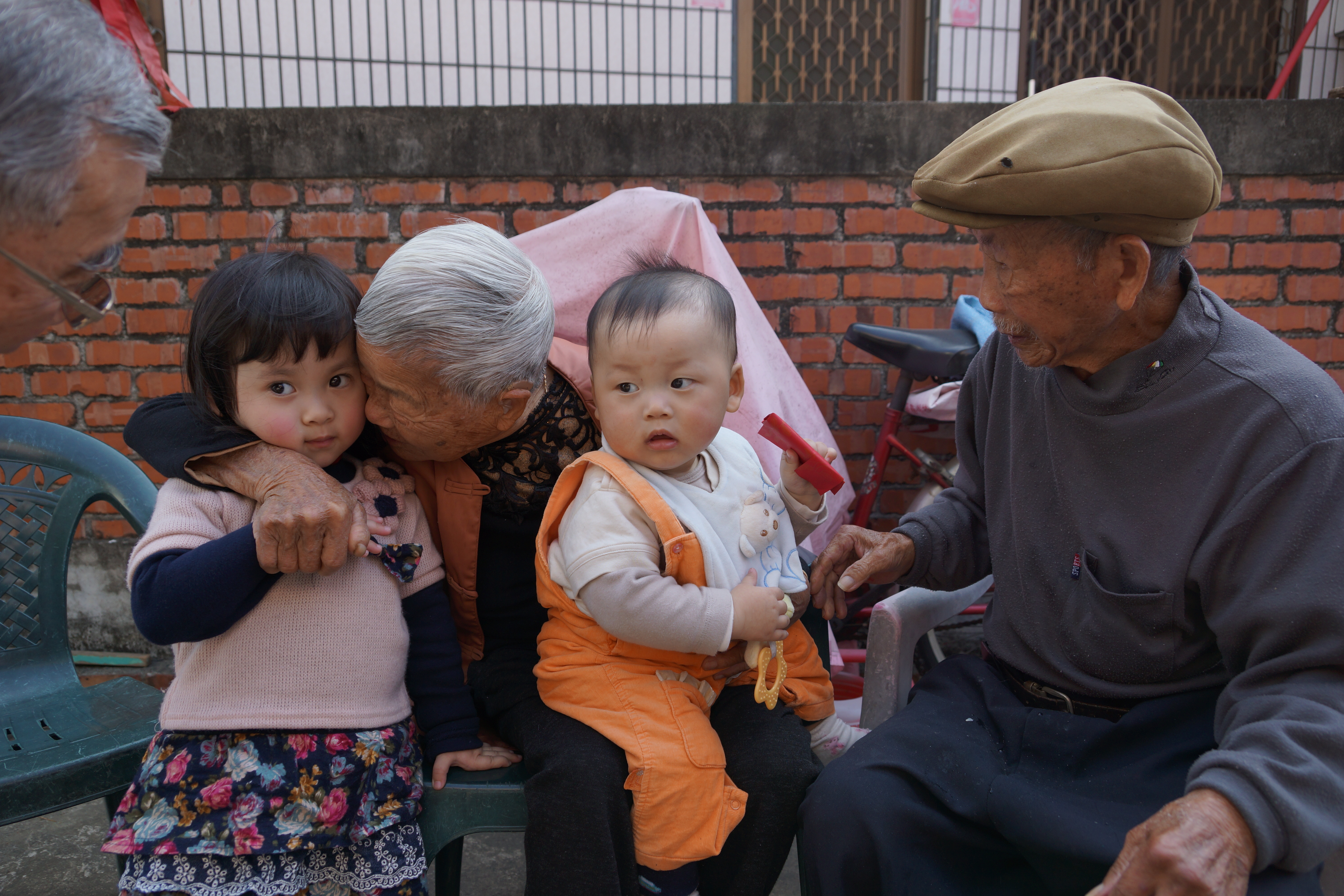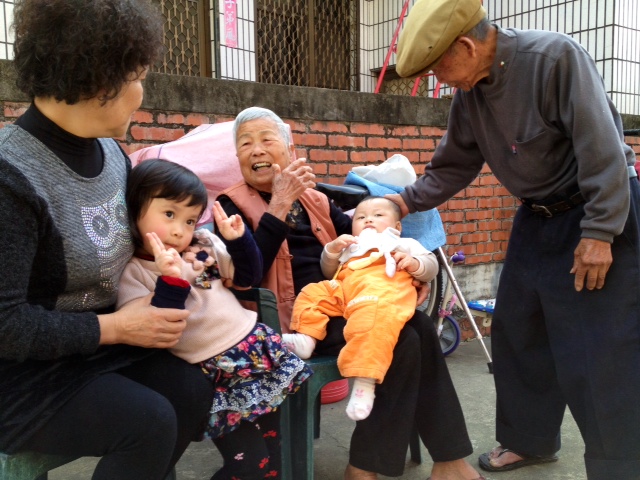 三位兒子找到好伴侶,相繼有了小孩子,新生命帶給長輩無限的歡悅,尤其四代同堂長輩慈祥的笑容與幼曾孫天真無瘕眼神的交會,真是一幅美上美的畫面。