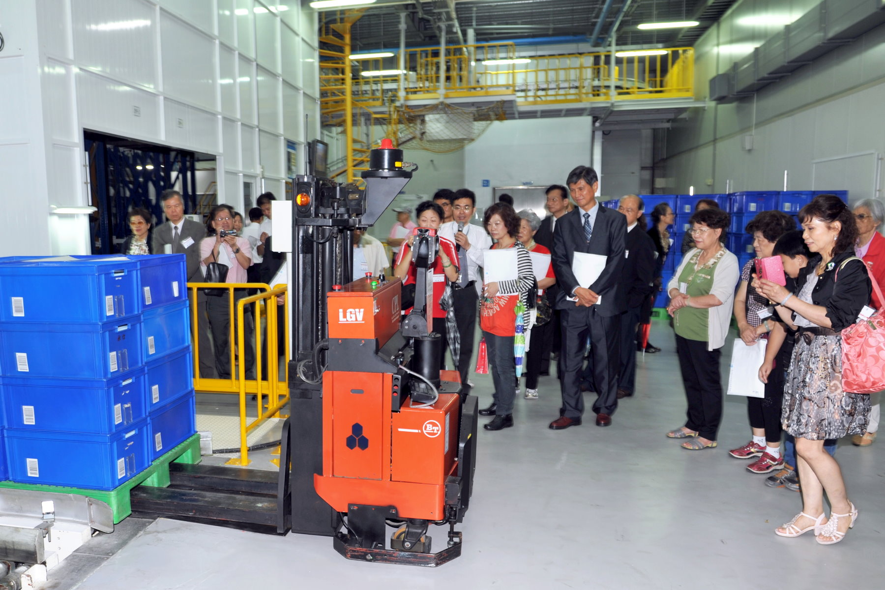 工廠內有個八層樓高的倉庫,倉庫內全部自動化,理貨、分貨、物流皆以電腦自動控制運作。倉庫旁有幾台搬運車,整齊的停在倉庫邊的停車格內…。如此整齊、明確,正想給工作單位按個「讚」時,忽然見一輛搬運車自走廊前來,因看不到有人操作,正在疑問時,接待人員告知這是無人駕駛的搬運車,靠雷射引導自動駕駛,直行、轉彎、閃人都沒問題,重點是,這套設備是100%MIT(台灣製造)。「那,走廊空間小,對向的二台車如何閃車呢?」「沒問題,它們不但會靠右走、還會禮讓。」