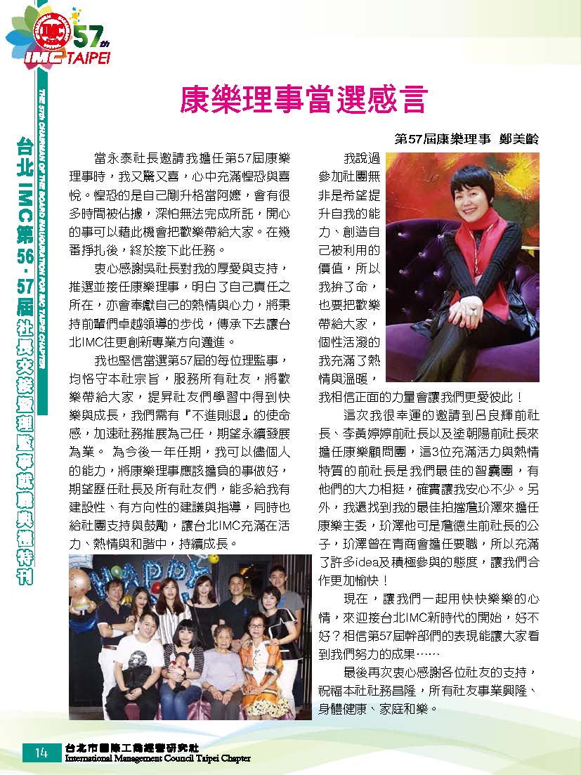 第57屆元月月刊 康樂理事當選感言 / 第57屆康樂理事 鄭美齡 By 管理員|2017-02-25T20:45:26+08:0018 2 月, 2017|社刊, 經驗分享|在〈第57屆元月月刊 康樂理事當選感言 / 第57屆康樂理事 鄭美齡〉中留言功能已關閉 請選擇您想分享文章的平台! FacebookXRedditLinkedInWhatsAppTumblrPinterestVkXingEmail: About the Author: 管理員 相關文章: IMC台北社2026年4月社刊 IMC台北社2026年4月社刊 IMC台北社2026年3月社刊 IMC台北社2026年3月社刊 IMC台北社2026年2月社刊 IMC台北社2026年2月社刊 IMC台北社2026年第65.66屆交接特刊 IMC台北社2026年第65.66屆交接特刊