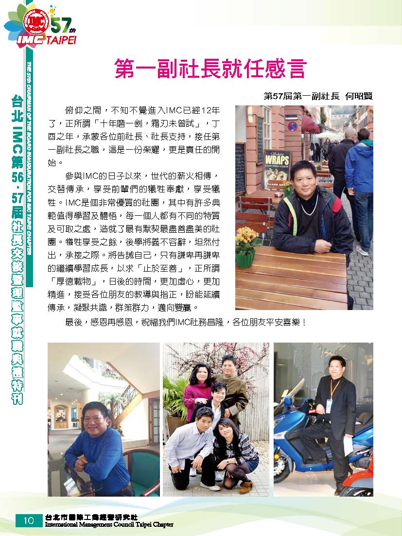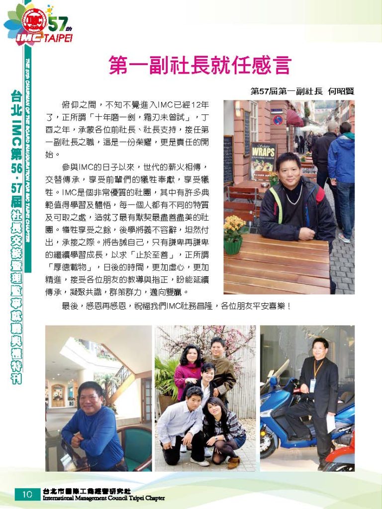 Home » 第57屆元月月刊 第一副社長就任感言 / 第57屆第一副社長 何昭賢