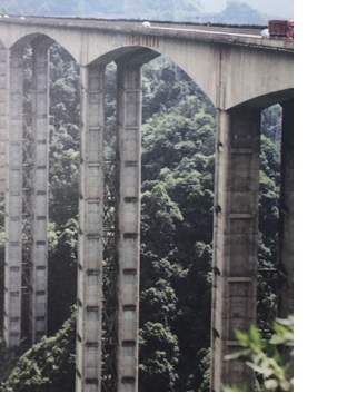 雅西高速公路,由於通過區域的地形劇烈起伏,全線共有大小橋梁270座,總長度91km,超過全部里程的1/3,其中不乏改進或創新的設計。以下將就最高橋墩達182.5m的臘八斤大橋以及位於小半徑曲線上抗震設防達到9度的干海子大橋加以介紹。